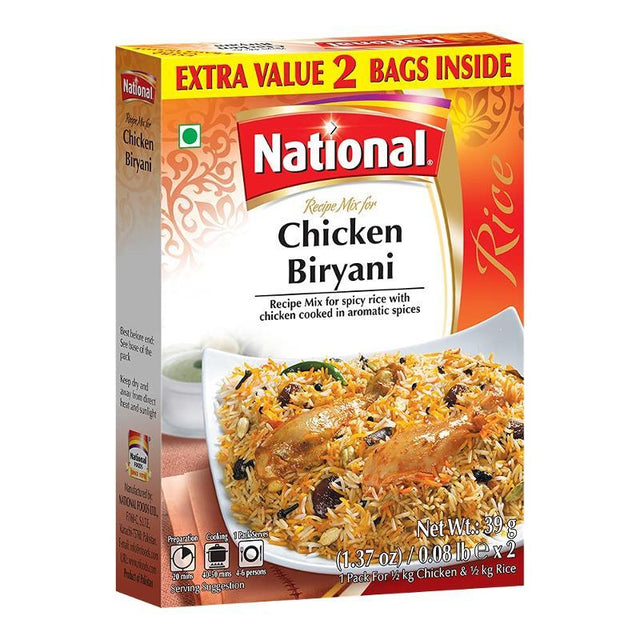 National Chicken Biryani Masala 90G is a spice blend crafted to help you prepare flavorful and aromatic chicken biryani with ease. It contains a mix of traditional spices that enhance the taste of the dish, ensuring a rich and authentic experience.